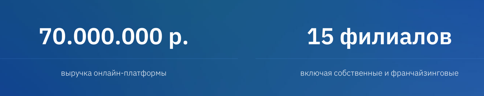 Сейчас проект находится на реализации онлайн-платформы с выручкой офлайн точек 70 млн в год